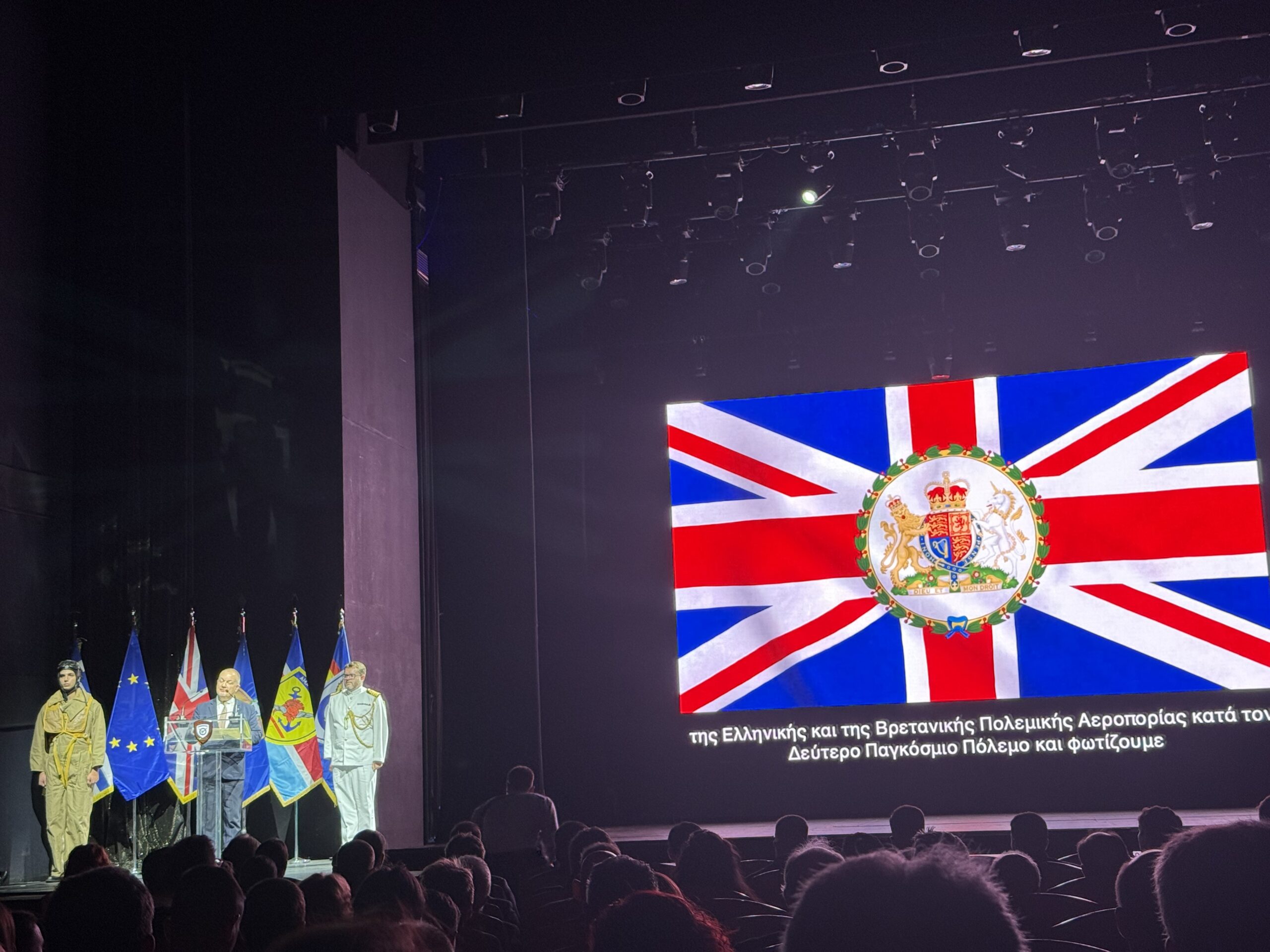 Η βραδιά ήταν αφιερωμένη στη δράση των ελληνικών και βρετανικών Μοιρών που πολέμησαν πλάι-πλάι στους ουρανούς της Μέσης Ανατολής κατά τον Β΄ Παγκόσμιο Πόλεμο, αποτελώντας μια συγκινητική επιστροφή στη μνήμη, στην τιμή και στην κοινή μοίρα δύο λαών που ένωσαν τις δυνάμεις τους στις πιο αποφασιστικές στιγμές της Ιστορίας, γράφοντας μαζί σελίδες θάρρους και αδελφοσύνης.