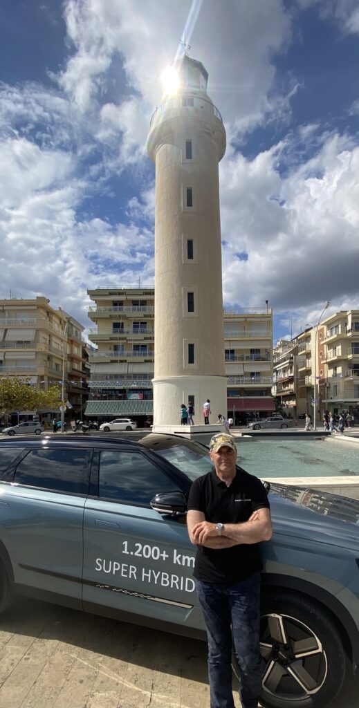 Στιγμιαία το ακολουθώ παρά πόδας για να έχω ένα μέτρο σύγκρισης . Η αθροιστική δύναμη των 347 ίππων από τον ηλεκτρικό και θερμικό κινητήρα. Για λίγο με μάξιμουμ ταχύτητα τα 187 χιλιόμετρα νιώθεις μια γραμμική και συνεχής δύναμη. Φτάνοντας στη Λάρισα σταματάμε για φαγητό και επειδή μετά από λίγο θα μπαίναμε στην Εγνατία εφοδιάστηκαν όλα τα οχήματα ξανά. Κινούμαστε στα όρια ταχύτητας των αυτοκινητοδρόμων. Το αυτοκίνητο που οδηγούμε είναι άνετο, στιβαρό και άκρως φιλικό. Στη μέση του ταμπλό δεσπόζει η τεράστια οθόνη αφής που σου προσφέρει πολλές δυνατότητες και πληροφορίες.
